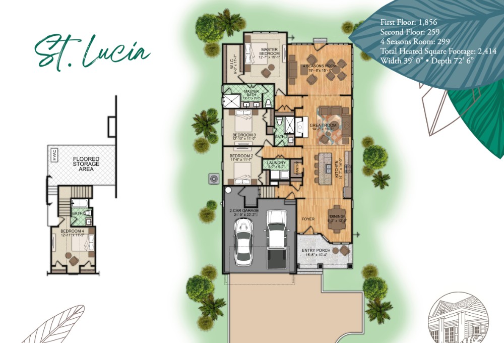 This beautifully crafted St. Lucia by Hagood Homes embodies the relaxed luxury of coastal living within the gated community of Sunset Reach. Designed with an open and inviting layout, the home features a spacious great room and dining area with soaring cathedral ceilings, complemented by a large kitchen with a 9’6” island—perfect for entertaining.