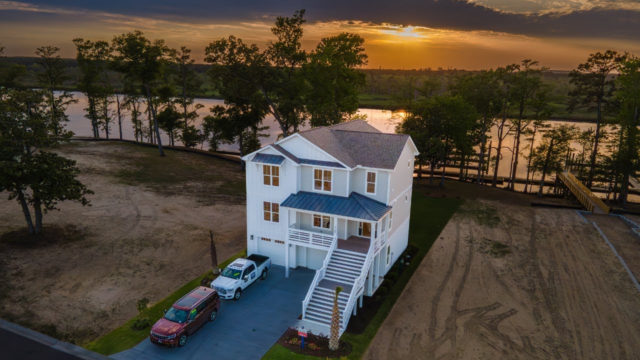 Discover the allure of this exquisite Saylor plan built by Kirk Pigford Homes in Sunset Reach. Three levels of luxury living nestled along the serene Northeast Cape Fear River.
